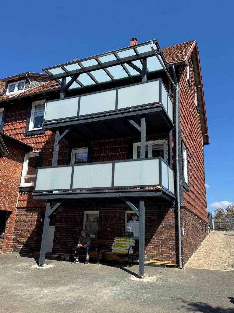 Ganzglasplatte als Vordach mit Haltestreben angehängt